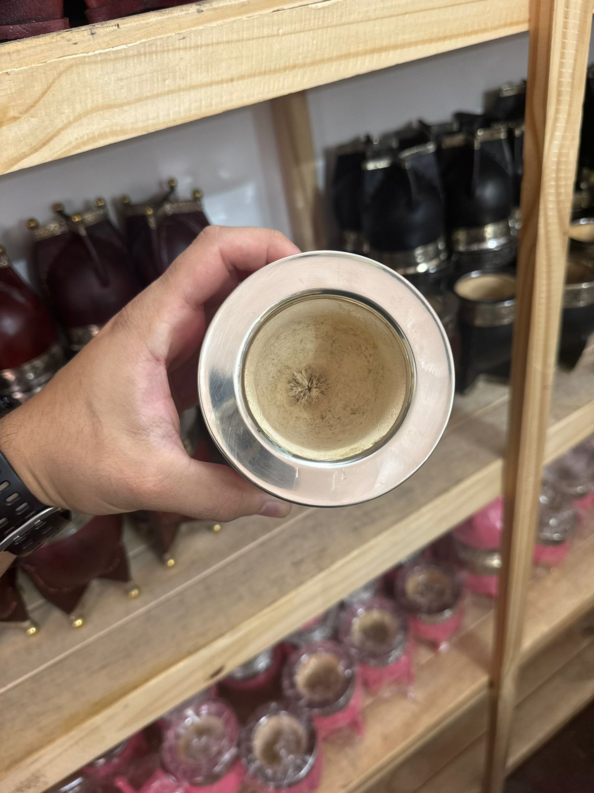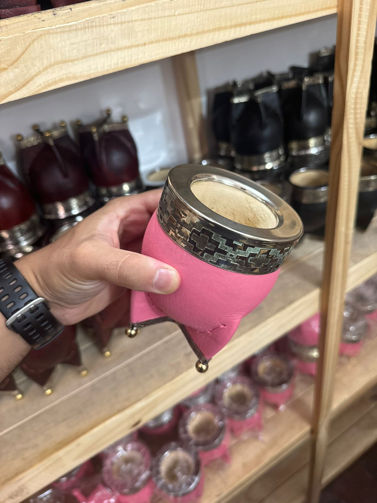 Imperial cuero liso rosa – con base de alpaca y pelotas de bronce
