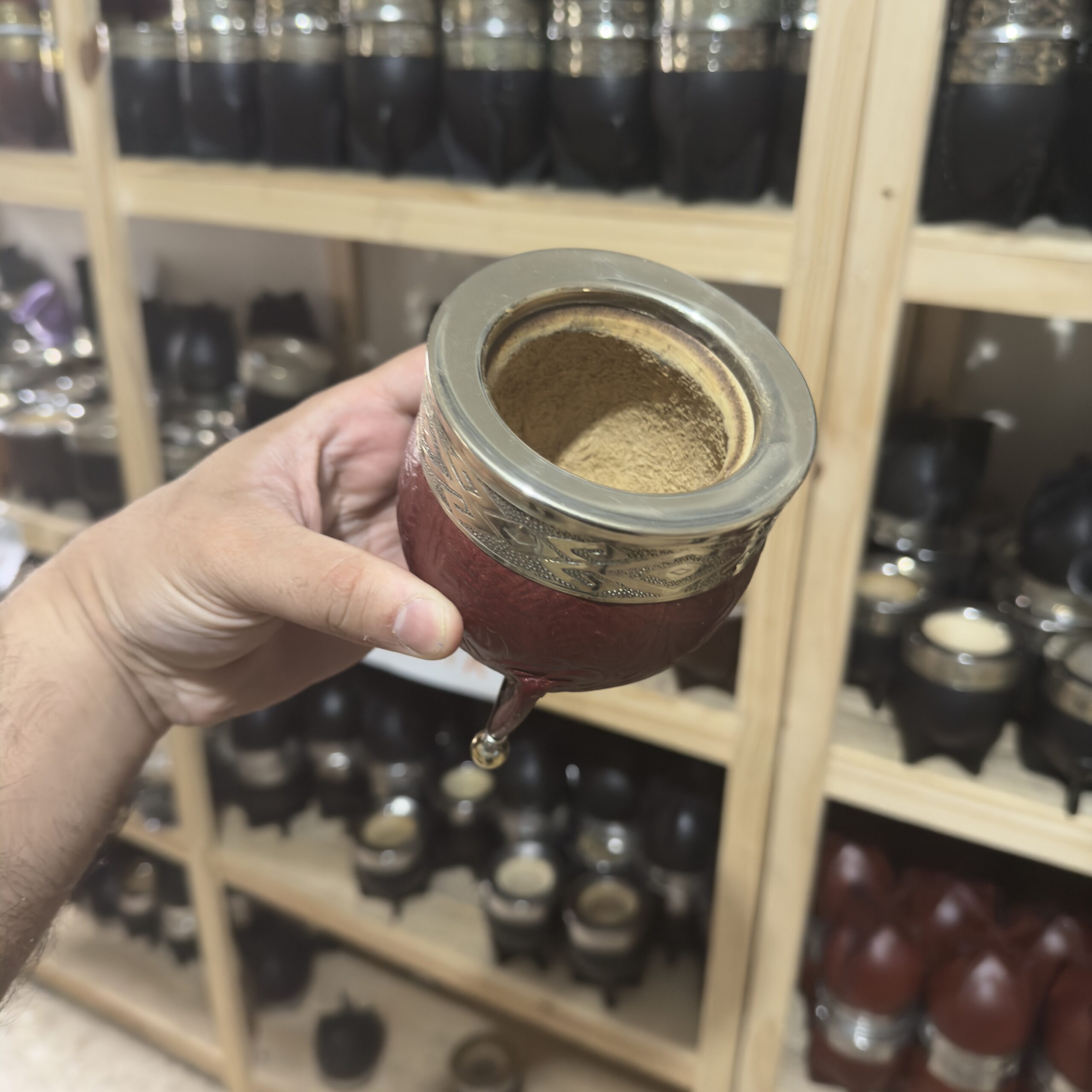 mate imperial BASE DE ALPACA Y PELOTAS – guarda de alpaca – cuero marron repujado – calabaza – tamaño variado