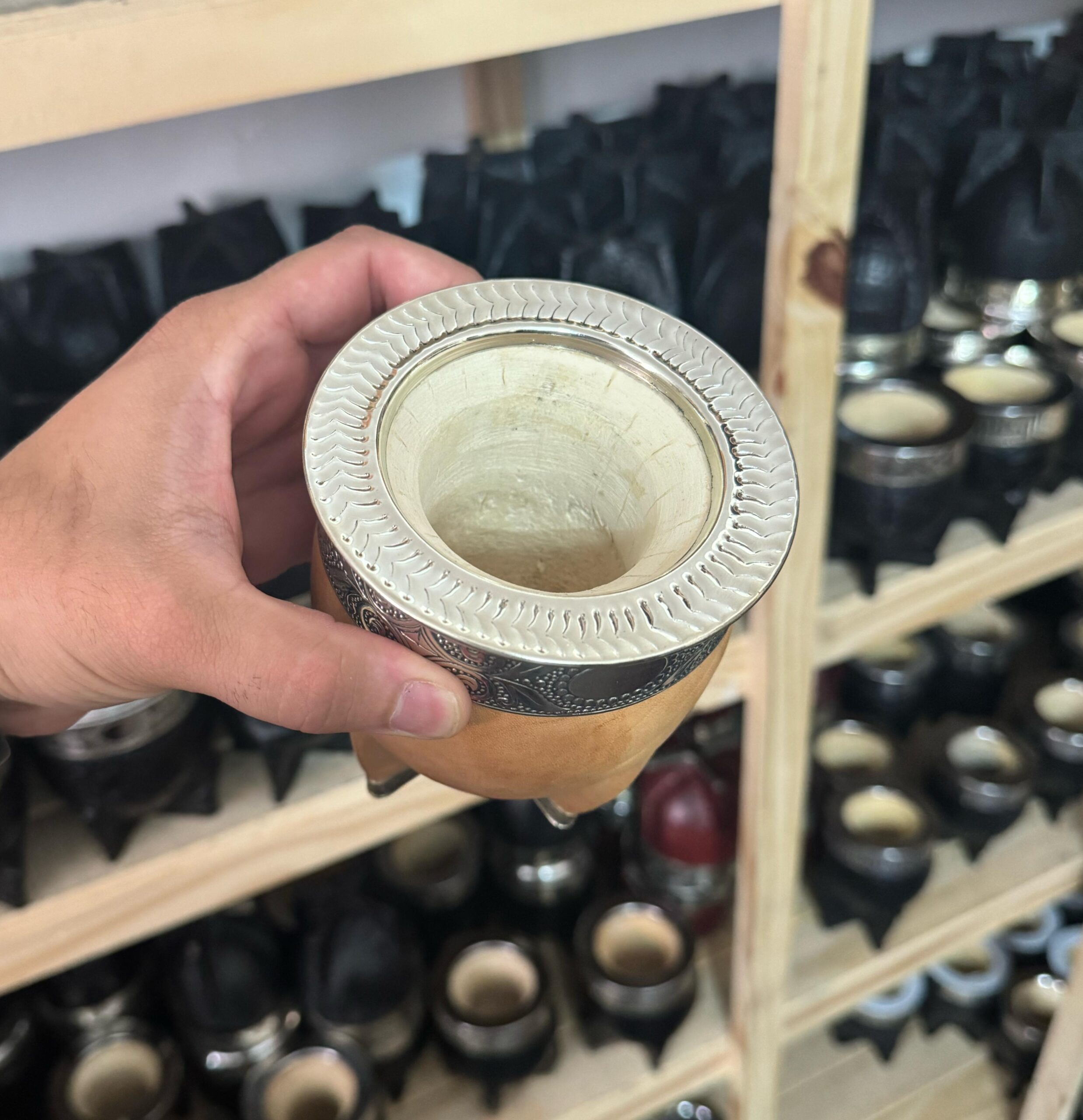 Imperial virola cincelado – base de alpaca gruesa – cuero natural – calabaza recubierta
