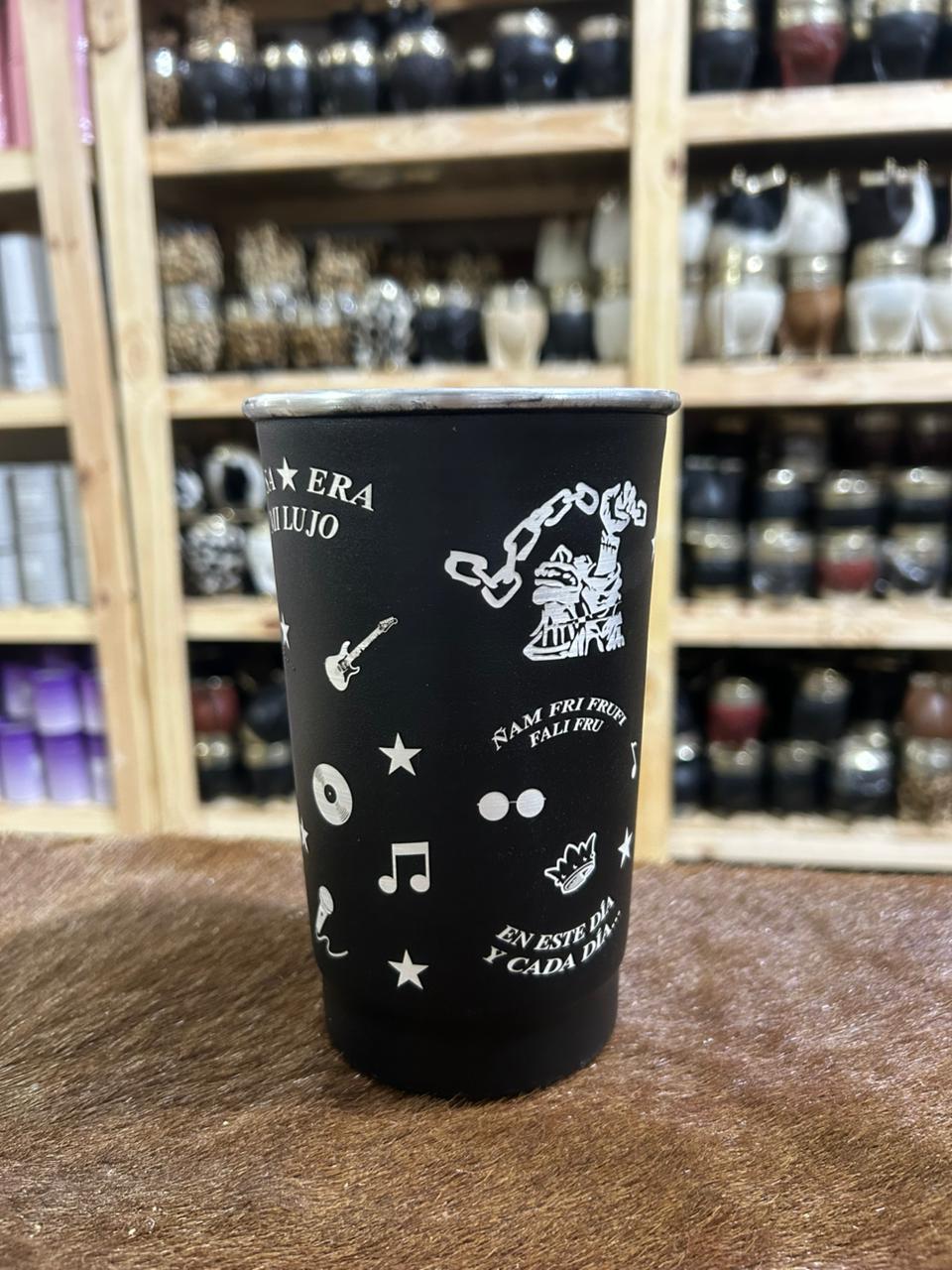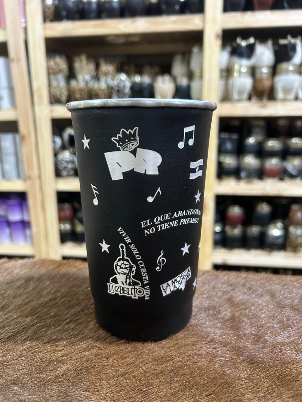 Vaso fernetero negro 1 litro GRABADO 360° DEL INDIO